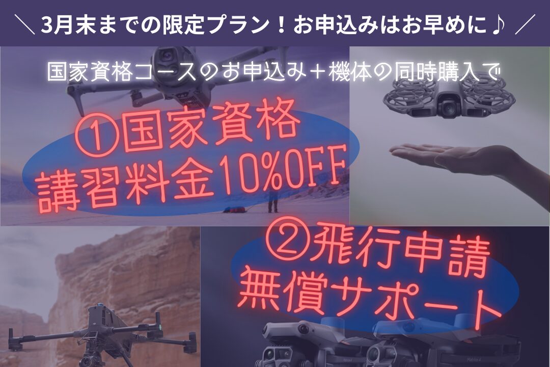 現在DMS兵庫姫路校&DMS大阪校では、国家資格コースのお申込み+機体同時購入の方を対象に、